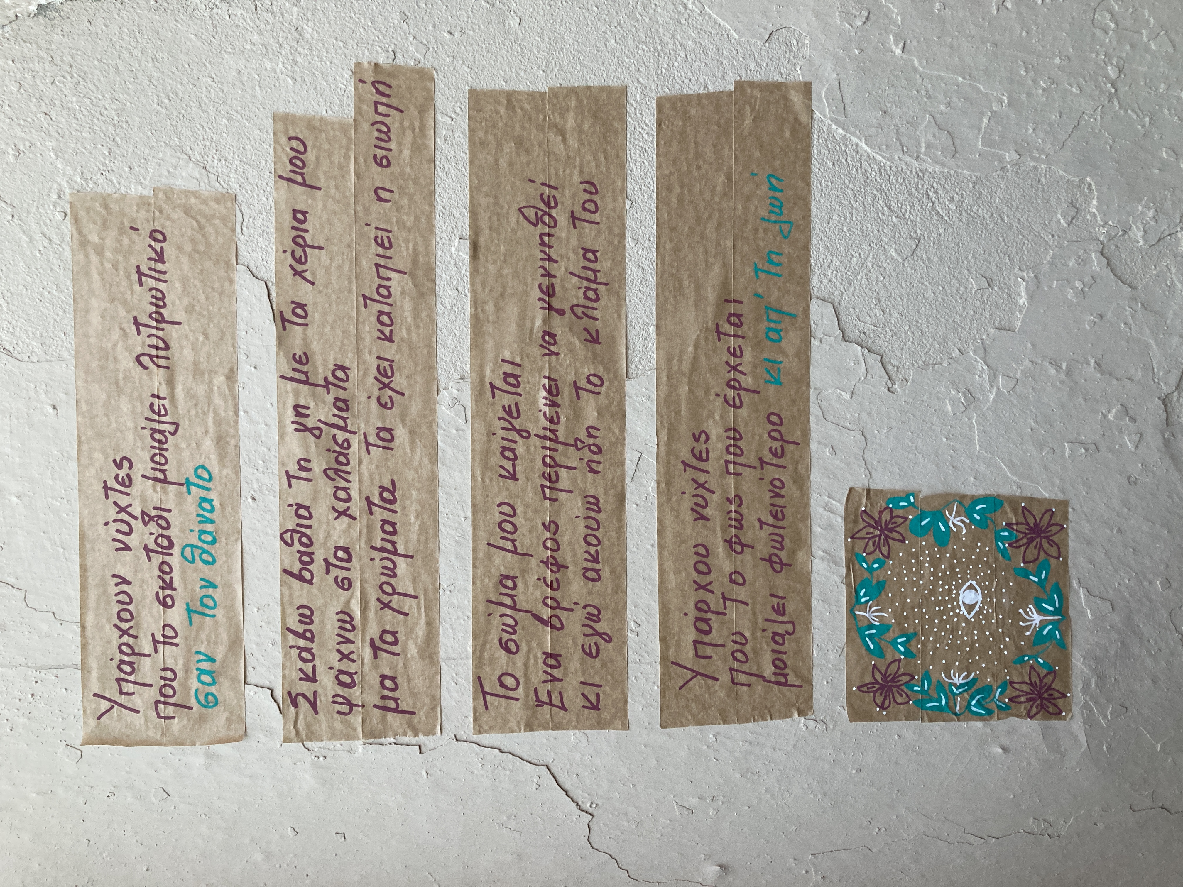 - deux fois en Crète dans le cadre du festival Echoanthos (2024 et 2025) avec déambulation musicale et en 2025, atelier collectif de poésie.
